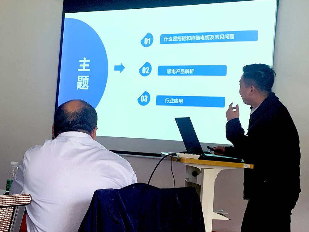 培訓從我司發展歷程,品牌定位,拖鏈電纜知識,到拖鏈電纜的行業應用,再到與進口產品的差異化等方面進行剖析。